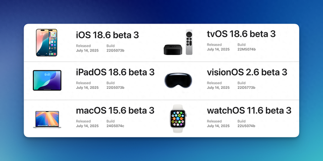 苹果于今天(7 月 15 日)凌晨推送了新的开发者测试版系统更新,其中包括 iOS 18.6 Beta 3,内部版本号为 22G5073b。