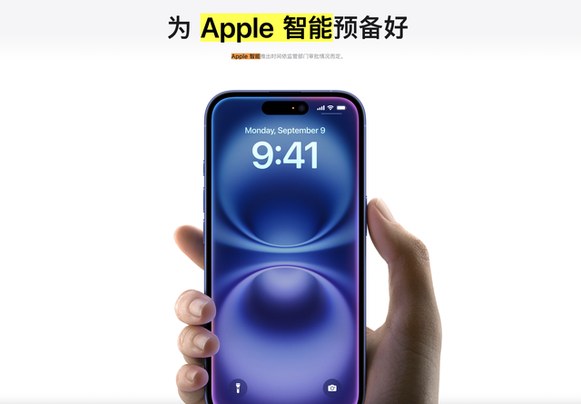 目前在 iPhone 16 的销售页面中,依然保留了“为 Apple 智能预备好”的文字提示,显然苹果并未放弃在国内推出本地化的 Apple 智能服务。